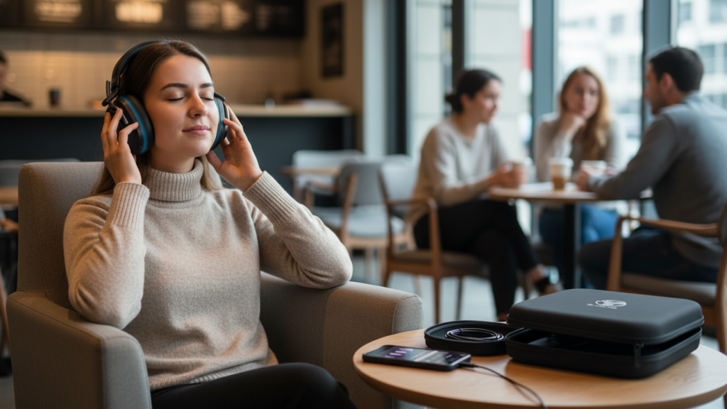 - Use ANC + low volume audio: a little music/white noise makes the “quiet bubble” stronger.