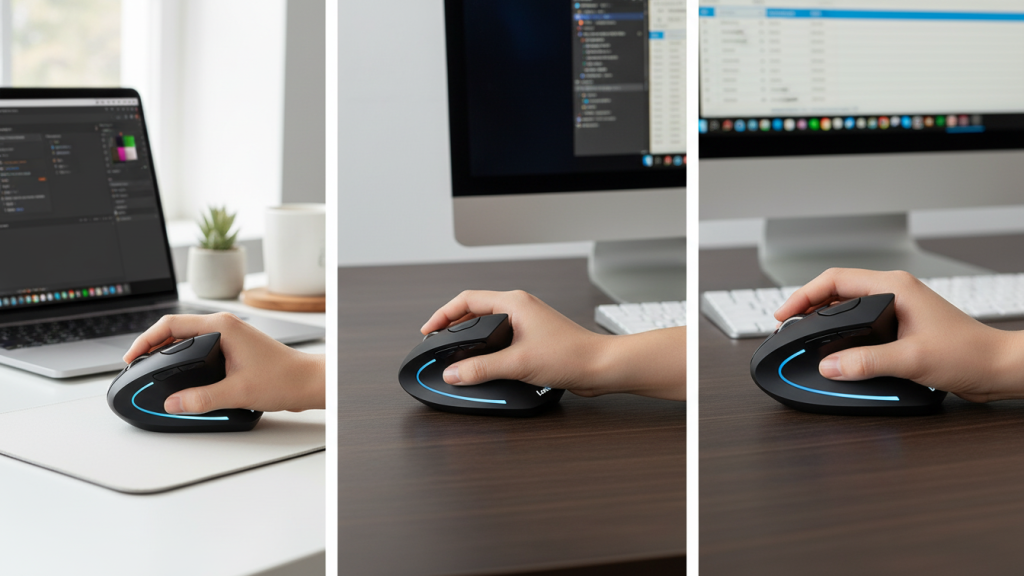 Traditional mice often keep your forearm rotated inward for long periods. Vertical mice place your hand closer to a “handshake” angle, which many people find: