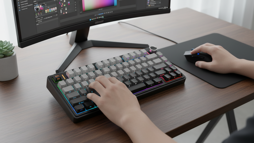 - Layout: 75% layouts save desk space but keep arrows; full-size adds numpad but stretches your arms more.